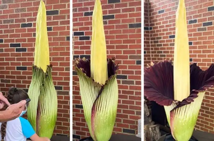 Бонус: «Аморфофаллус (считается самым большим цветком в мире) в моем универе зацвел! Когда он цветет, пахнет гнилым мясом. 8 лет потребовалось растению, чтобы сделать это»