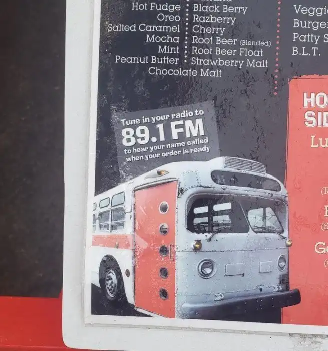 У этой бургерной есть своя радиостанция, которая крутит музыку 50-х годов. А когда заказ готов, диктор называет ваше имя