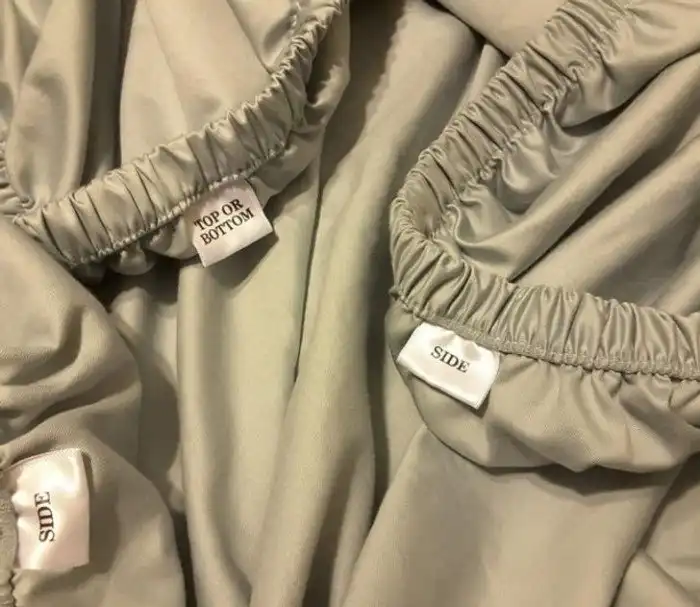 «У простыни из моего нового набора есть этикетки с обозначениями правильных сторон, чтобы ее было проще стелить»