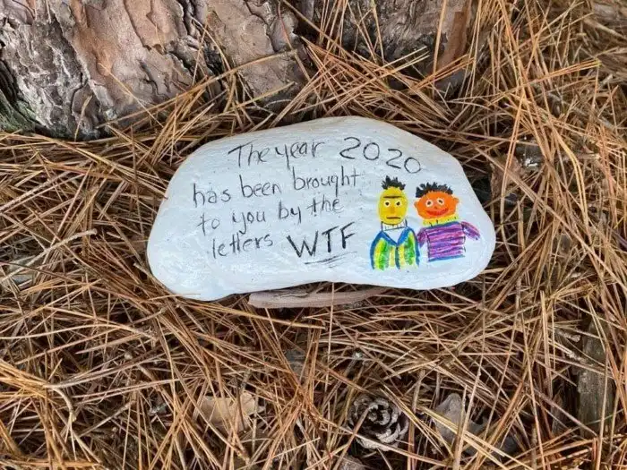 Надпись на камне гласит: «2020-й год познакомил нас с тремя буквами WTF». Это отсылка к «Улице Сезам». Что же, нам сложно не согласиться.