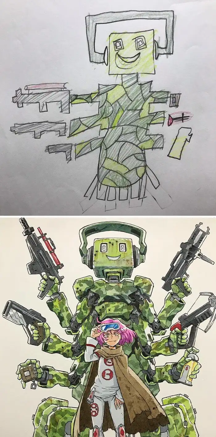 Французский художник Томас Ромен рисовал многих популярных аниме-персонажей для известных мультфильмов, но лучшие его идеи - те, что ему подкидывают собственные сыновья.