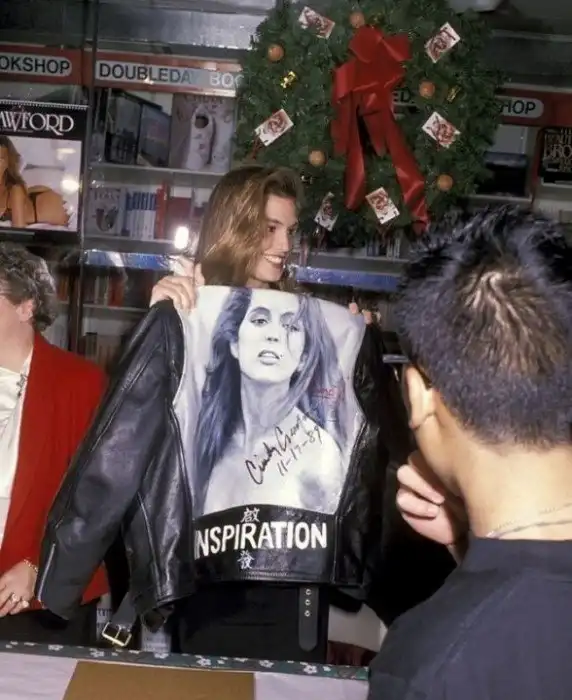 16. Синди Кроуфорд рекламирует календарь на 1990 год и раздает автографы, 17 ноября 1989 г.
