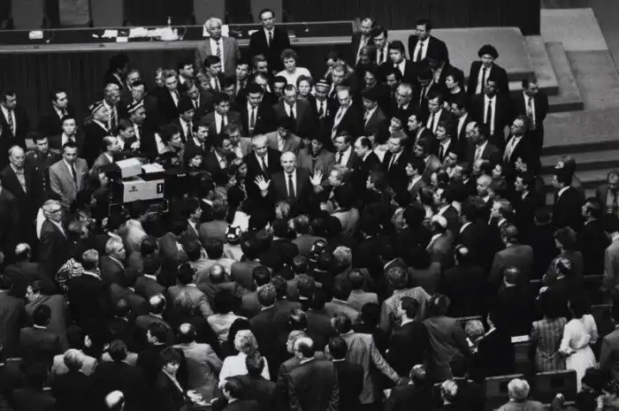 27. Михаил Горбачев в окружении делегатов Съезда народных депутатов, 1989 год, Москва