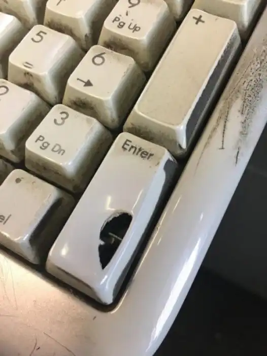 Компьютер, который привезли на ремонт, был приклеен к столу эпоксидной смолой. Владельцам пришлось выпиливать его