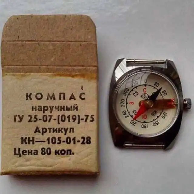 Наручный компас КН—105- 01- 28 по 80 копеек. СССР. 1970-е.