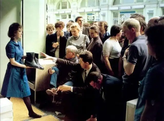 За зимними сапогами. ГУМ. Москва. СССР. 1980-е.