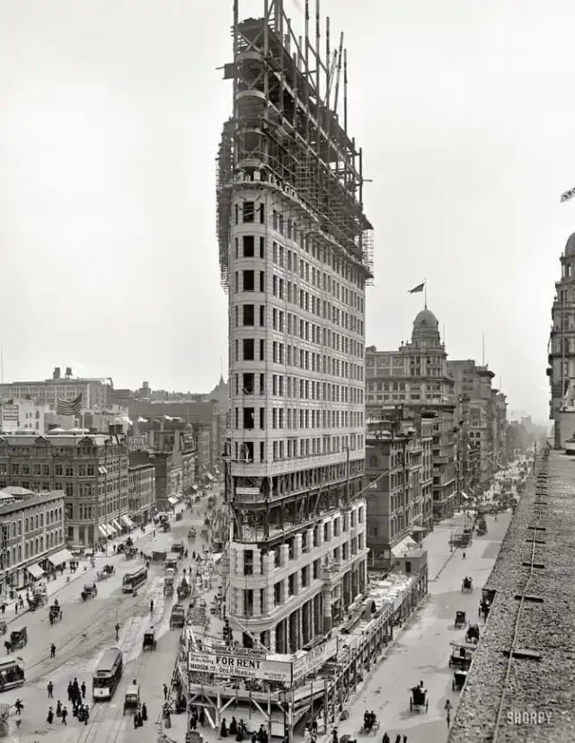 Строительство известного "дома-утюга", одного из архитектурных символов Нью-Йорка, 1902 г.