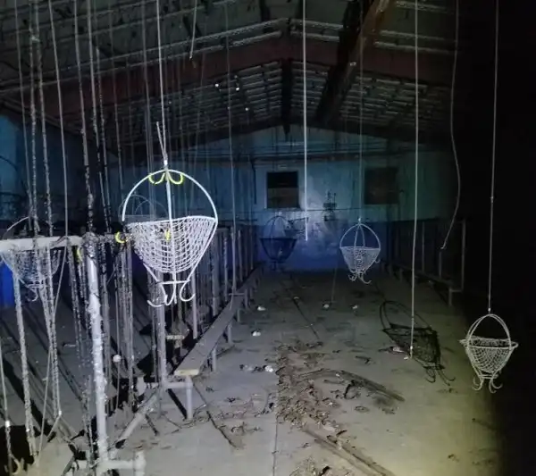 Ответ: "Это раздевалка для шахтеров. В корзины помещалась рабочая одежда, которая потом поднималась наверх и закреплялась".