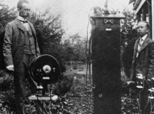Первый в мире беспроводной телефон, создан Натаном Стаблфилдом. Фото 1902 г.