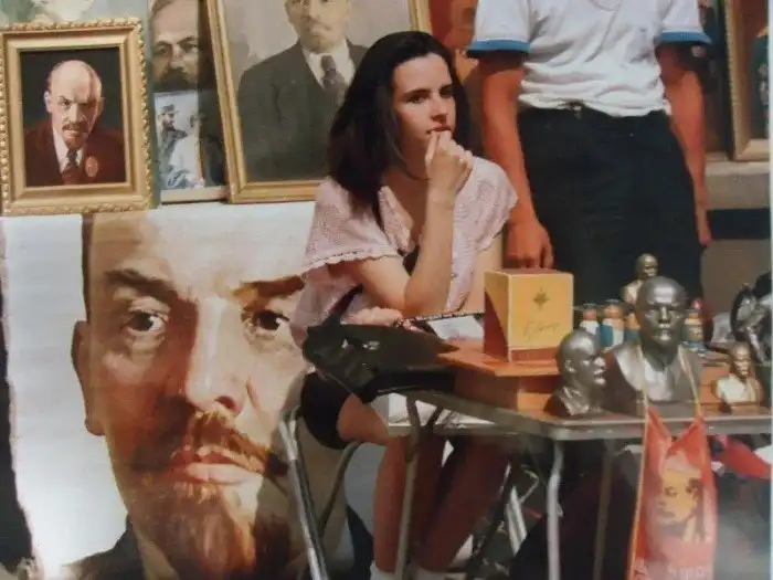Девушка продает портреты Владимира Ильича Ленина