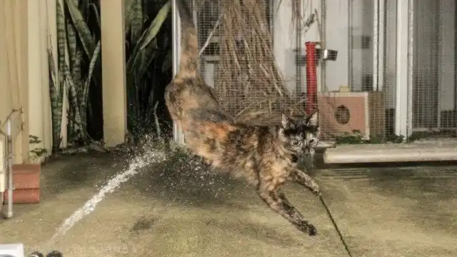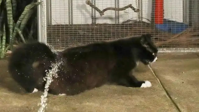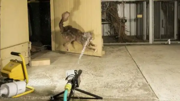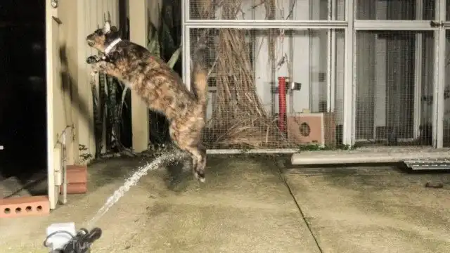 Хозяин этого дома установил ловушку для соседских кошек, которые заходят на его территорию. Ему надоело, что котики постоянно мочатся перед порогом его дома. И ответил тем же: в каждого нарушителя теперь прилетают брызги... воды!