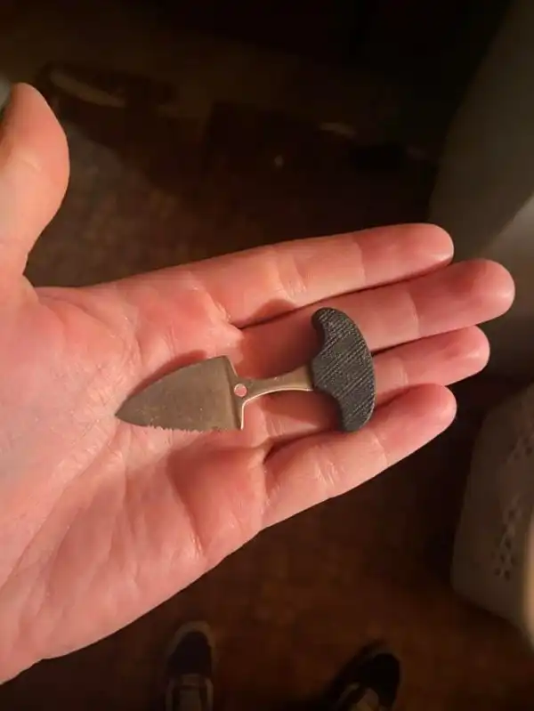 Ответ: это тычковый нож - черная часть это рукоятка, а лезвие торчит из внешней стороны кулака.