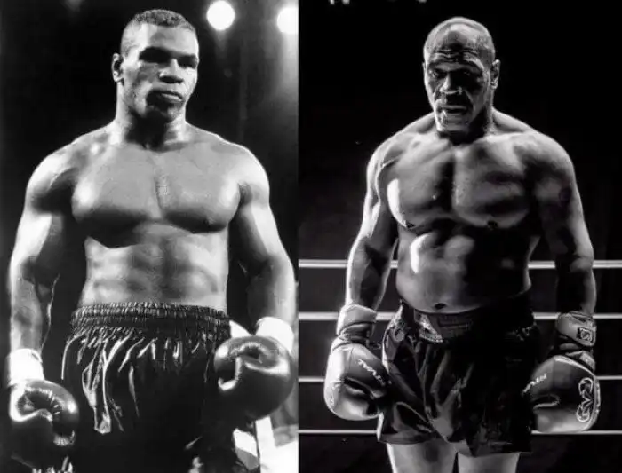 Боксер Майк Тайсон возрасте 25 и 54 года (1991, 2020)