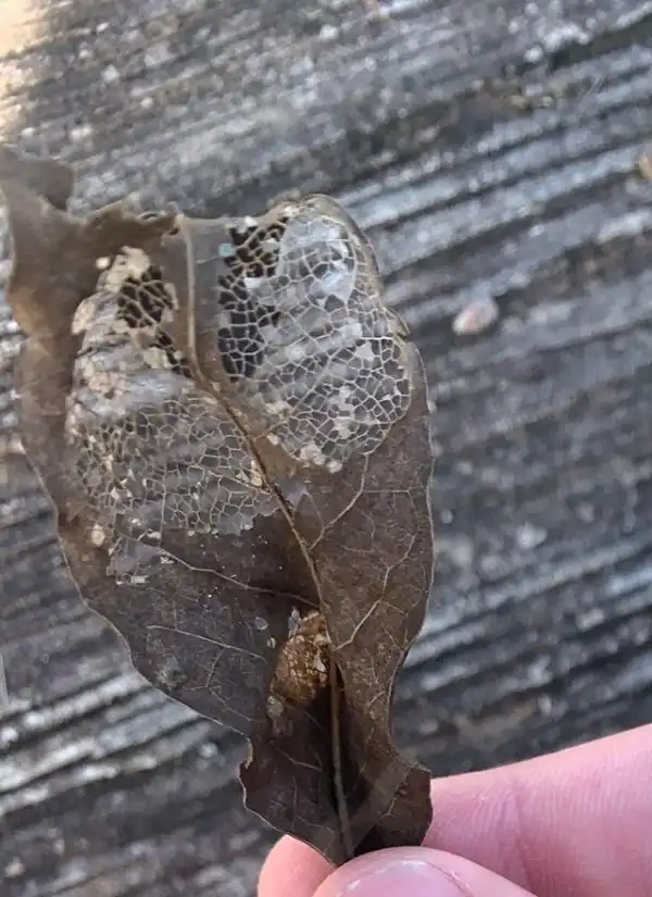 Вот что происходит с листочком после того, как до него добралась гусеница