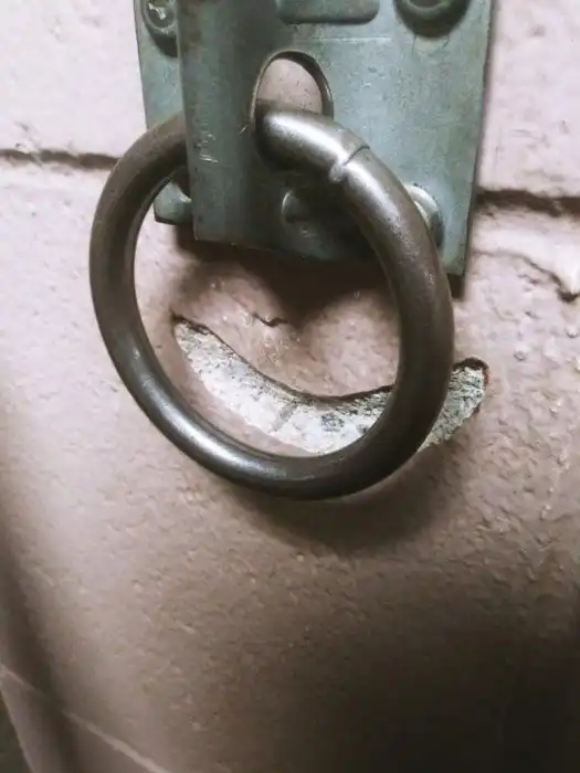 10. «Место, где кольцо, при помощи которого закрывают ворота, ударяется о бетонную стену»
