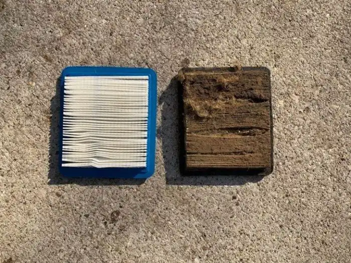 15. «Старый воздушный фильтр газонокосилки моего отца рядом с новым»