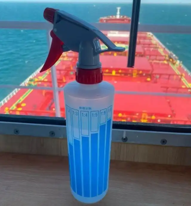 Бутылка с распылителем, который показывает, в каких пропорциях надо смешивать