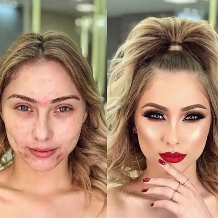 1. Кто-то использует макияж, чтобы скрыть дефекты кожи