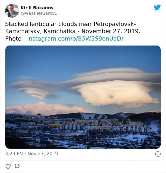 13. Лентикулярные облака. Петропавловск-Камчатский, 25 ноября