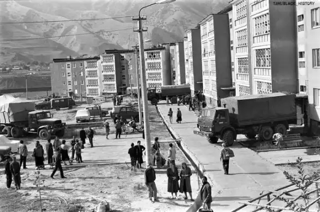 Российские войска производят эвакуацию жителей Нурека. Таджикистан, Нурек, 4 ноября 1992 года.