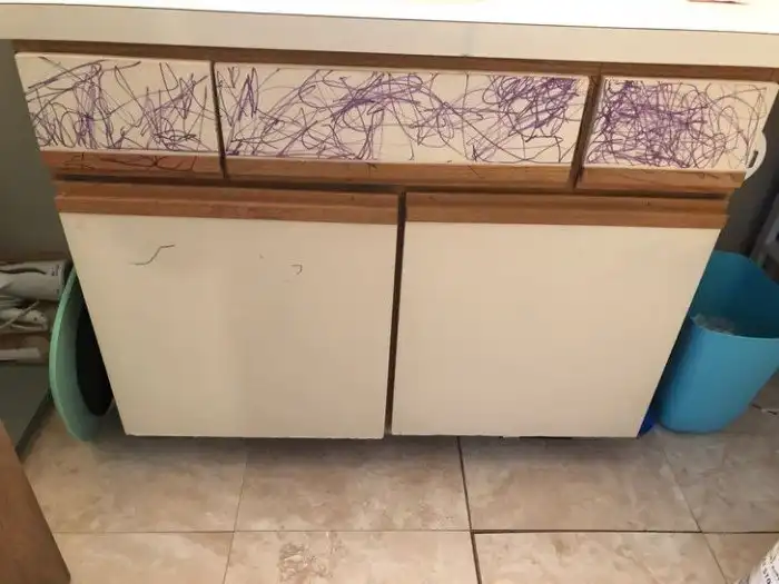 21. «Мой ребенок нашел стирающиеся маркеры и решил опробовать их в нашей ванной. Оказалось, что они ни черта не стираются»