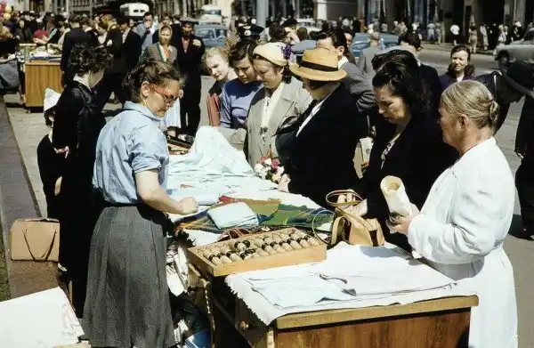 В одной из серий фотоснимков он запечатлел уличную торговлю в советской столице. В цветных фотографиях Формана лавки и киоски, предлагающие покупателям цветы, фрукты, мороженое, воздушные шарики, носки, мыло и книги
