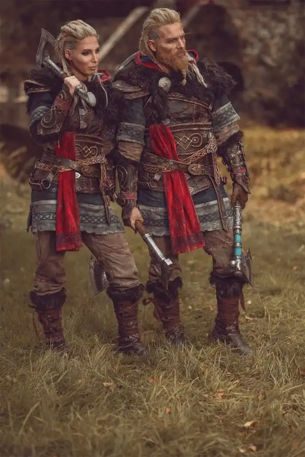 Видимо, не одну меня очень вдохновила эта игра и эпоха викингов. Ещё один пример актуального и брутального косплея получился у супружеской четы из Германии: Maul Cosplay и его жена Maja Felicitas подготовили невероятно детализированные и качественные костюмы мужской и женской версии Эйвора из Assassin’s Creed Valhalla.