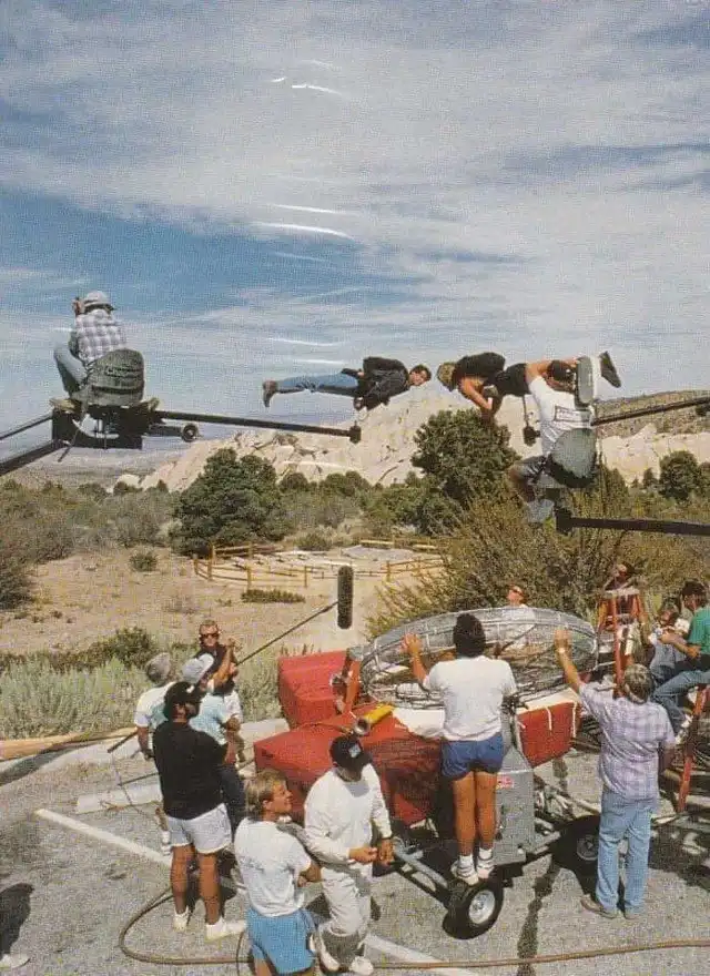 Киану Ривз и Патрик Суэйзи на съёмках фильма "На гребне волны". 1990 г.
