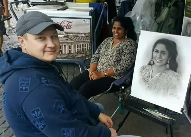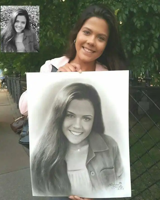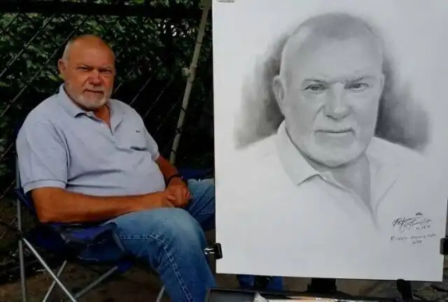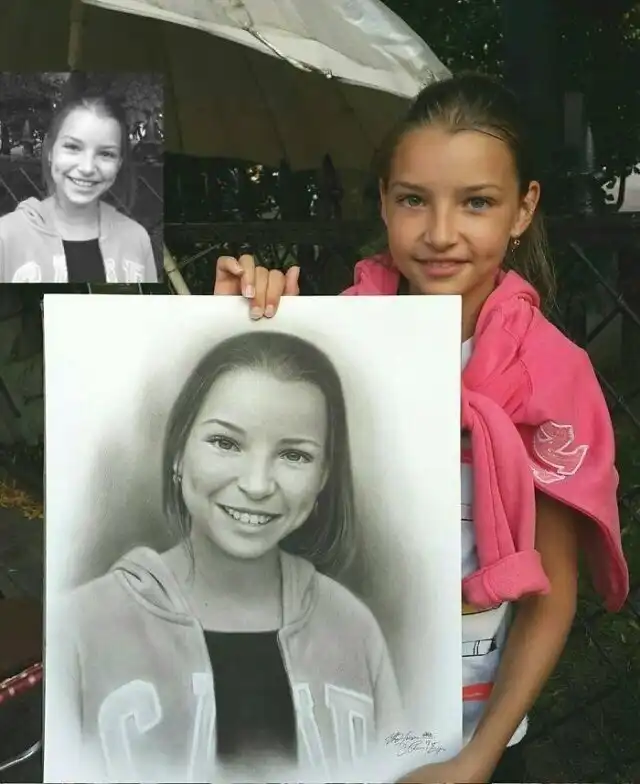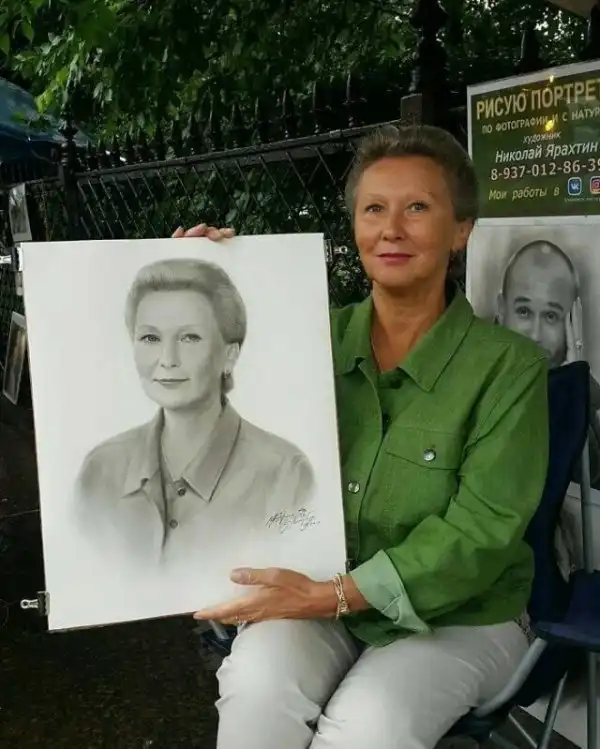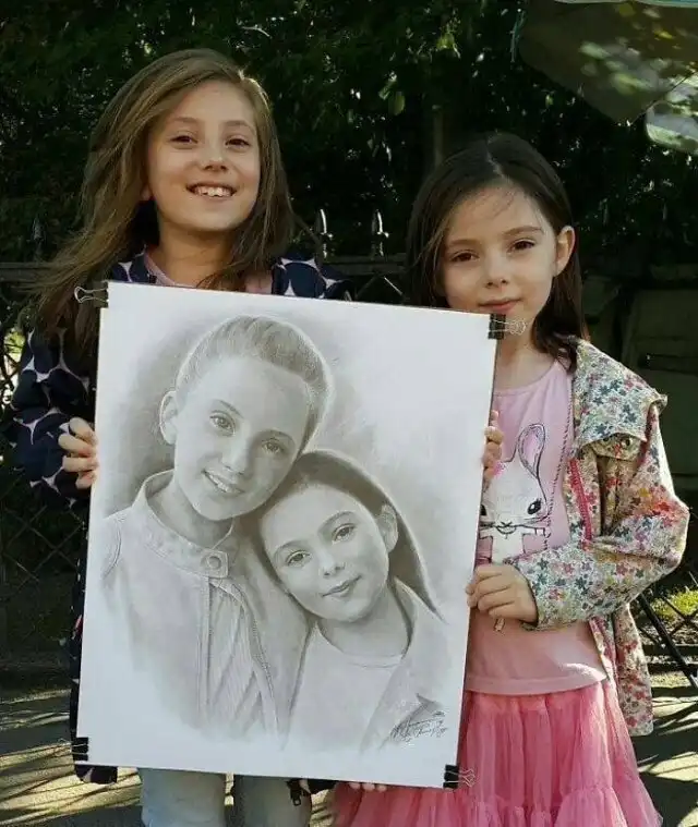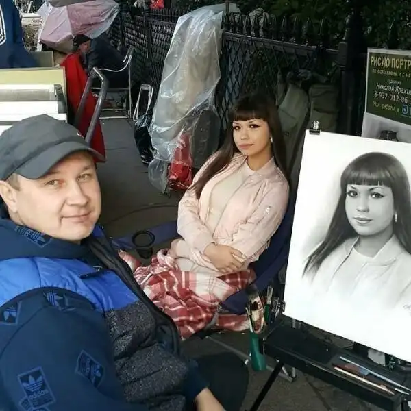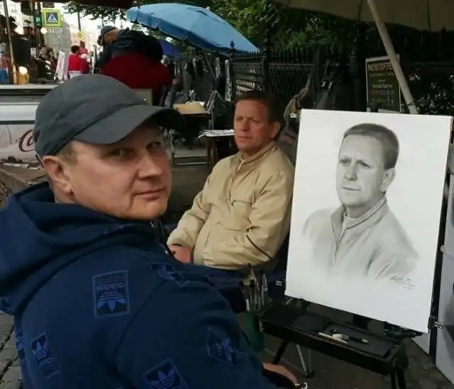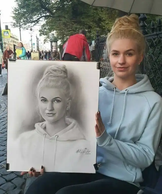 Портреты, нарисованные карандашом уличным художником.