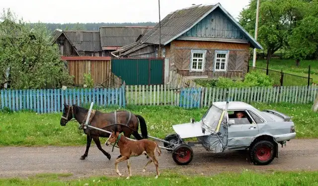 33-летний пастух Алексей Усиков из деревни Слабодка, Беларусь, соорудил оригинальную повозку из строго кузова автомобиля. Мужчина использовал старый Audi-80, которую он в шутку называет “Audi-40”, поскольку понадобилась только половина автомобиля. Повозка Алексея оборудована аккумулятором, фарами, небольшой печкой и даже магнитолой. В движение транспортное средство приводится при помощи кобылы по кличке Зорка.