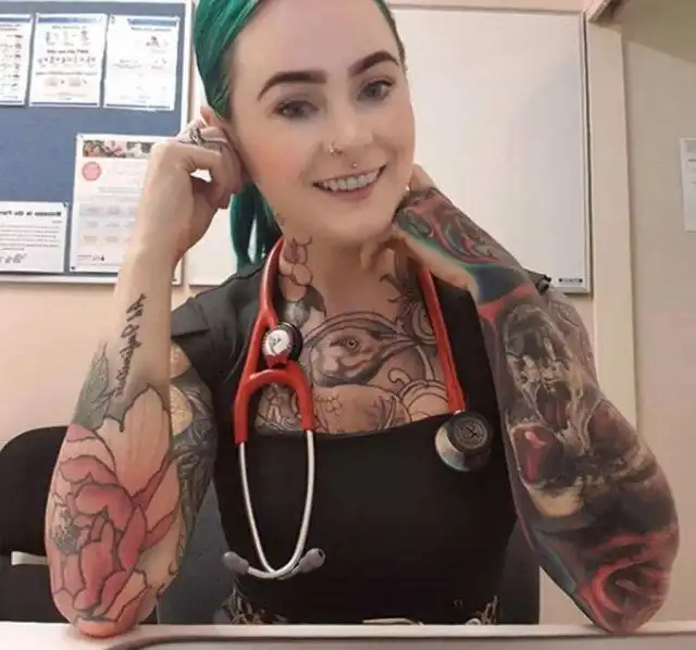 Барышню зовут Сара Грей и она медик. И судя по всему татухи на всё тело ей не мешают