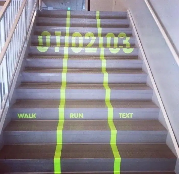 Администрация одной из школ, чтобы избежать толкучки, сделала специальные полосы на лестницах: для тех, кто бежит, для тех, кто не торопится, и для тех, кто постоянно смотрит в телефон