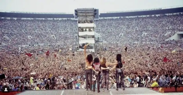 Группа Mötley Crüe на Международном фестивале мира и рока в Лужниках, всего фестиваль посетило более 200 тысяч человек, 1989 год