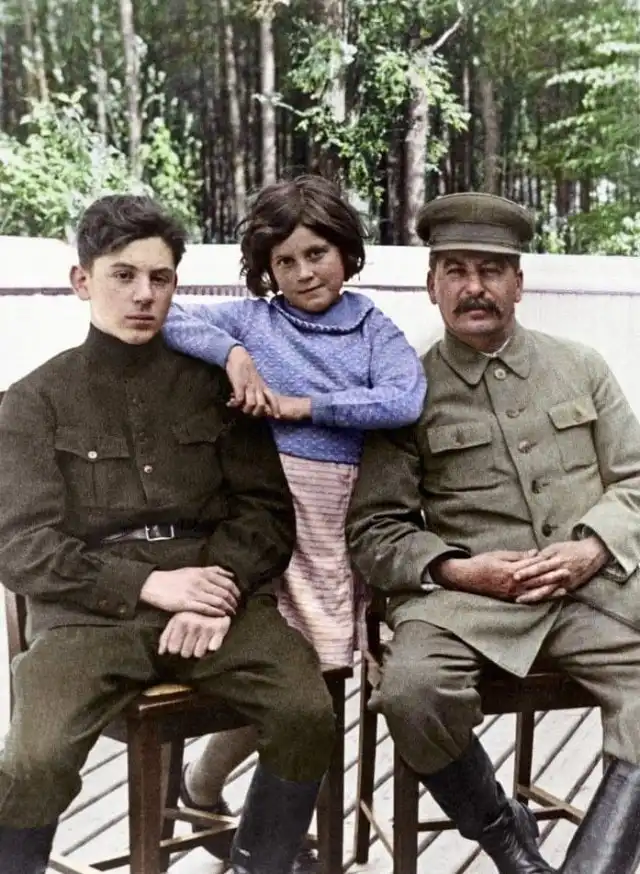 Иосиф Сталин с сыном Василием и дочерью Светланой. СССР, 1935 год. "Стальная семья"