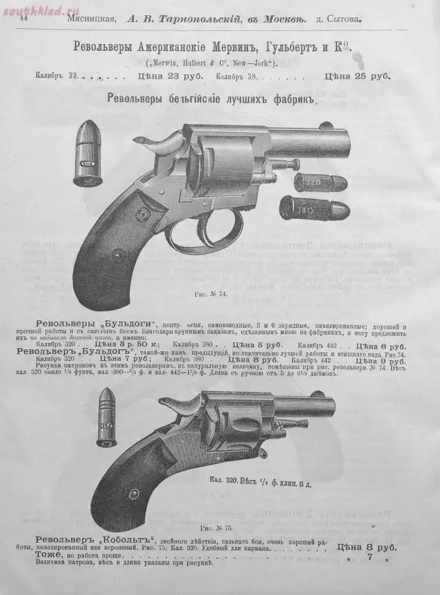 Прейскуранты оружейных магазинов царской Росии