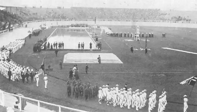 Делегация Княжества Финляндского (на тот момент в составе Российской империи), отказавшаяся идти под российским флагом на открытии Олимпийских игр в Лондоне. 1908 г.