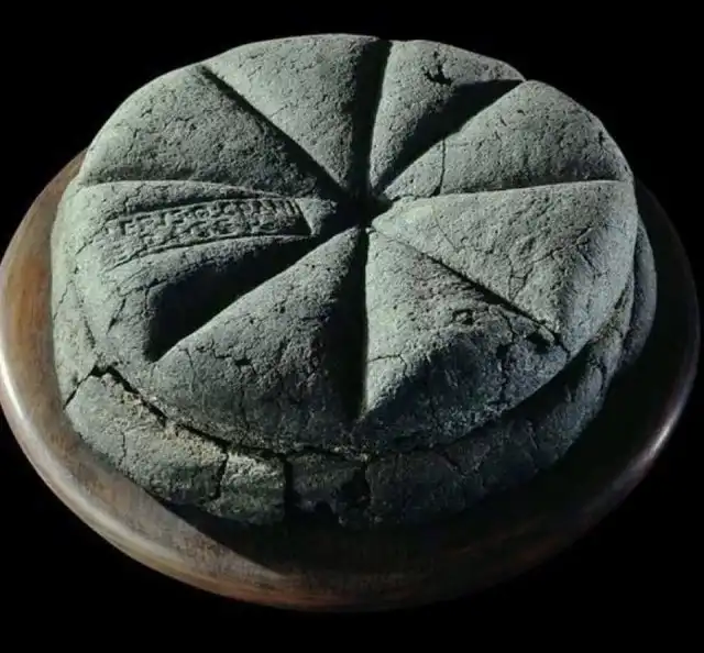 Обуглившийся, но прекрасно сохраненный (виден даже штамп пекаря), хлеб из Помпей, 79 год нашей эры.