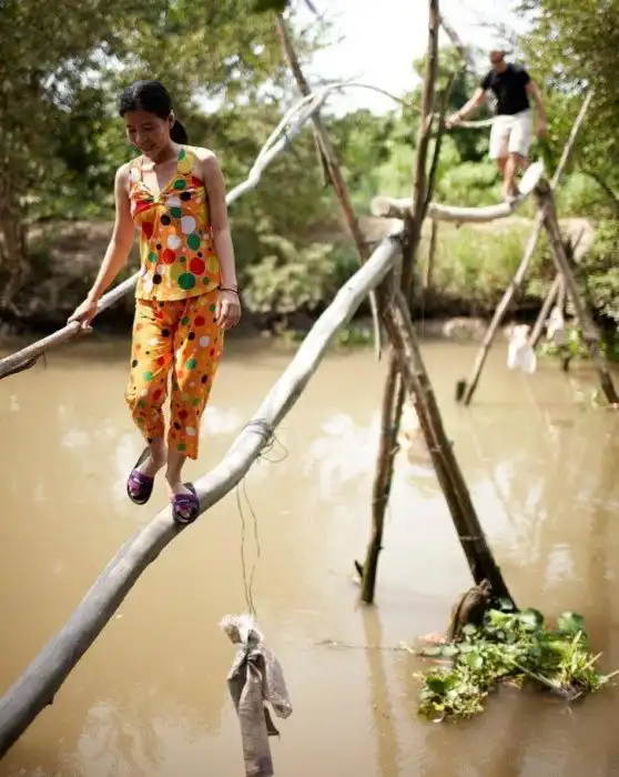 «Мосты обезьян» (Вьетнам) состоят из одного большого бревна для ног и другого меньшего размера для рук