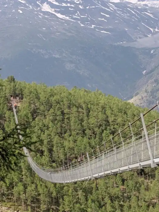 Швейцария, самый длинный подвесной пешеходный мост в мире - 80 метров в высоту, 494 метра в длину