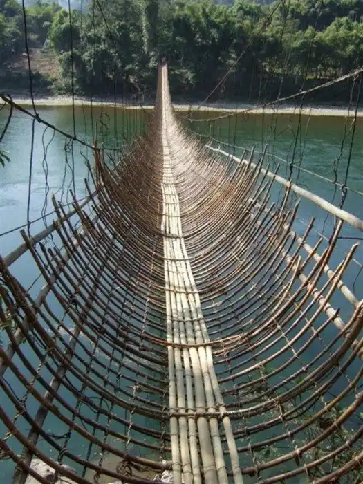 Висячие бамбуковые мосты на реке Сианг (Индия0