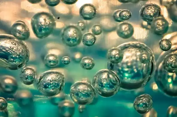 Капли на бутылке с водой, реверсированный объектив с широко открытой диафрагмой, и солнечный свет.