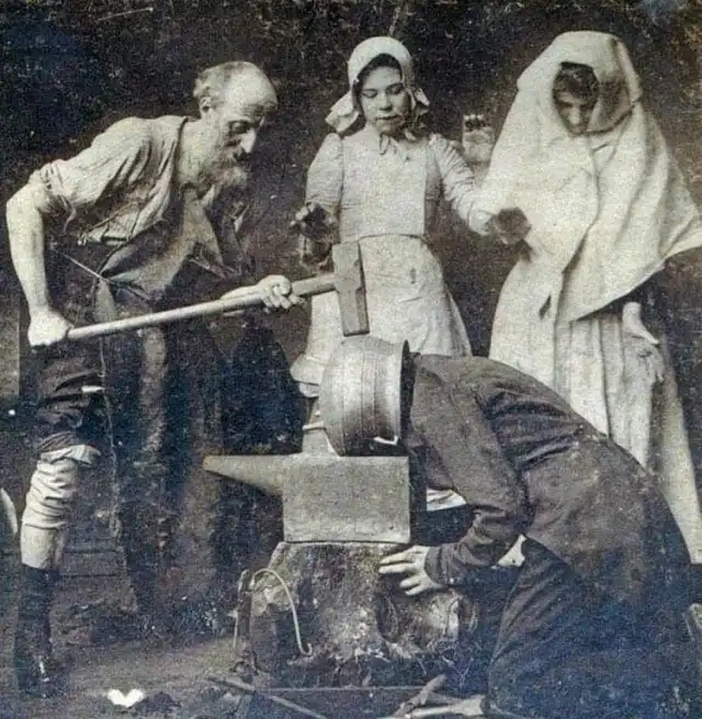 Попытка исцелить ребенка-рахитика путем протаскивания через дупло в целебном дереве. Швеция, 1918 год.