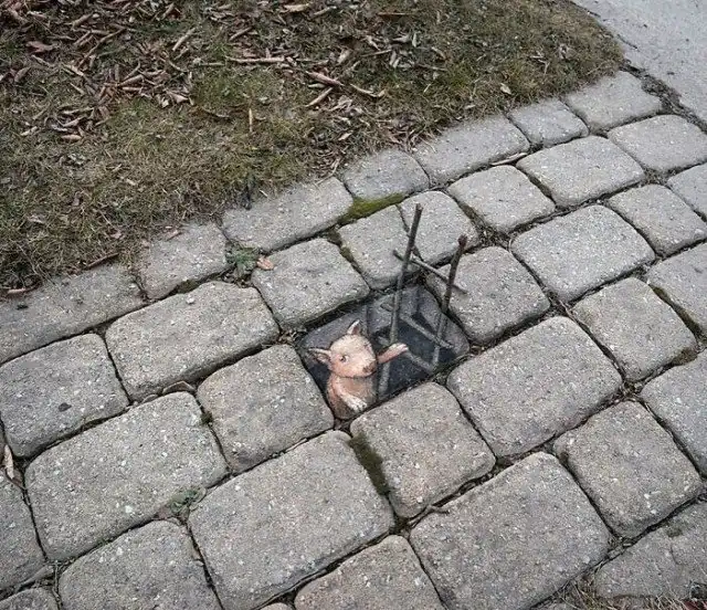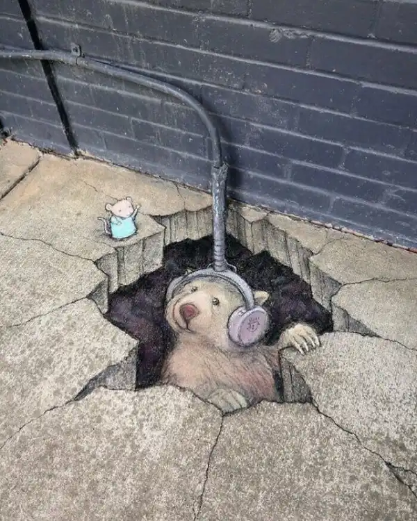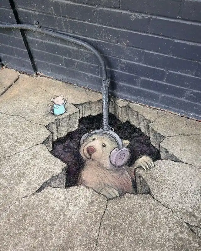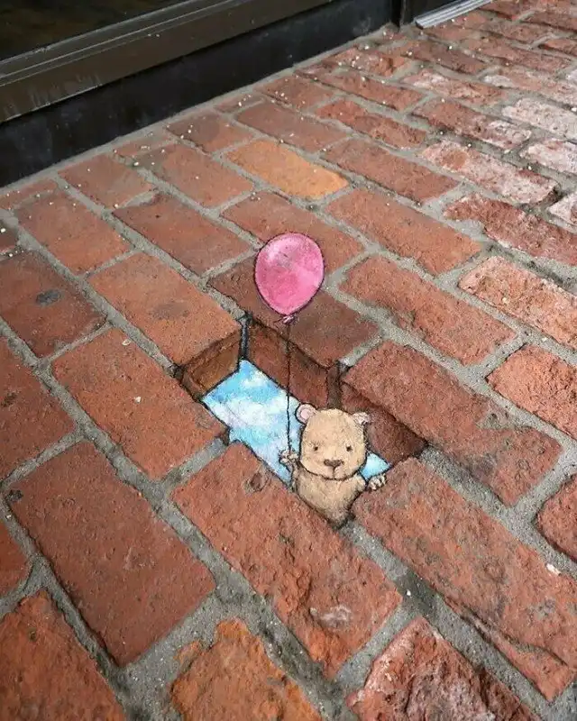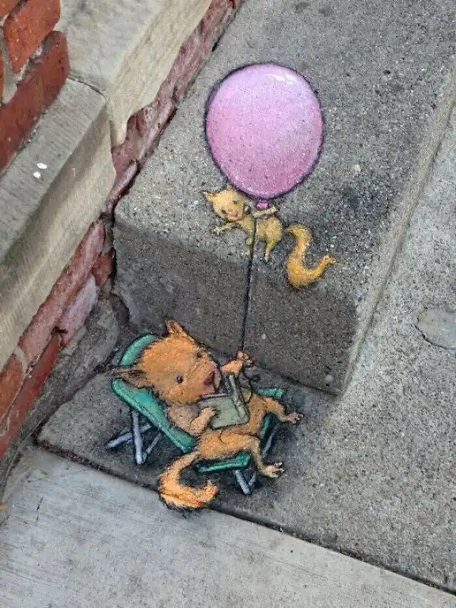 Дэвид Зинн - художник из Анн-Арбора, штат Мичиган. Он известен своим «эфемерным искусством», созданным на улицах исключительно при помощи мела, угля и случайных предметов.