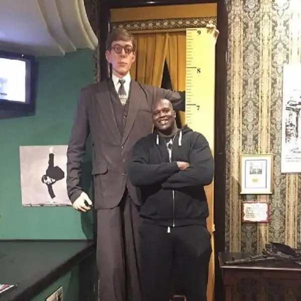 Статуя Роберта Уолдоу в натуральную величину и басктболист Шакил О’Нил (2,16 м) рядом. Роберт Уолдоу — самый высокий человек в истории. Его рост был 2,72 метра.