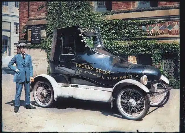 Рекламная машина магазина обуви припарковалась напротив пресвитерианской церкви. Сан-Франциско, Калифорния. 1922 год.