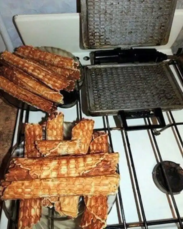 Вафельница до сих пор живая. Печем иногда по приколу