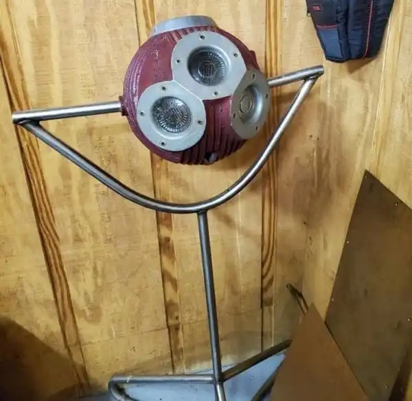 Это стальной вращающийся шар на штативе с отверстиями для линз. Что, как, зачем и почему - без понятия