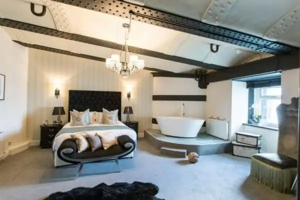 Устали? Это еще не все. В форте еще есть терраса на крыше, сауна, площадка для барбекю и спа-салон с четырьмя процедурными кабинетами. Расположение форта весьма удобное для владельцев вертолета - до Лондона лететь всего 20 минут.