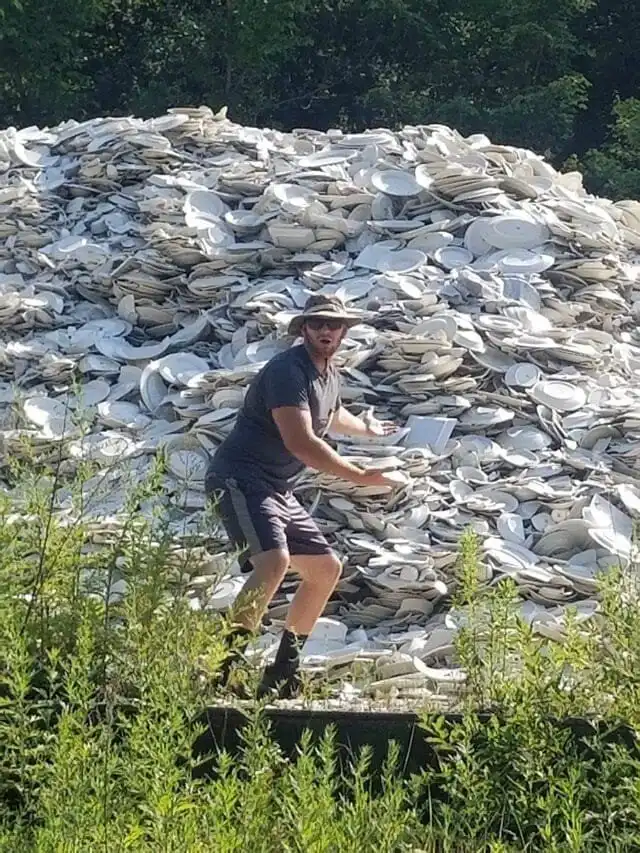 Я ехал по просёлочным дорогам Пенсильвании и увидел гору посуды посреди леса!