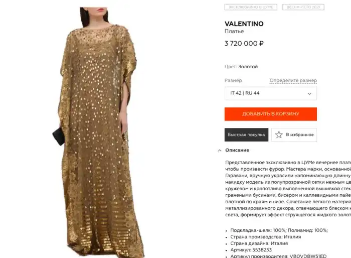 5. Самое дорогое платье из представленных на сайте обойдется в 3 720 000